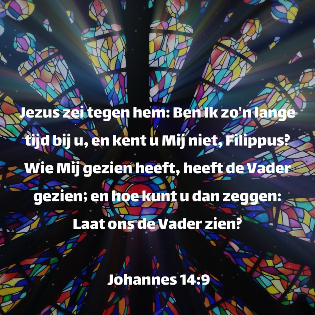 ‘Jezus zei tegen hem: Ben Ik zo’n lange tijd bij u, en kent u Mij niet, Filippus? Wie Mij gezien heeft, heeft de Vader gezien; en hoe kunt u dan zeggen: Laat ons de Vader zien?’