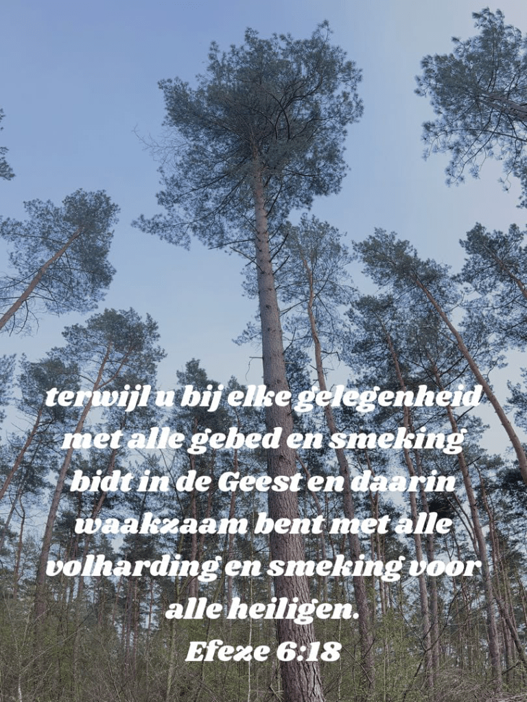 Snap je nu dat de duivel daar zo’n gruwelijke hekel aan heeft, dat hij het zevende wapen laat vergeten? Omdat hij weet dat als God, de Heilige Geest Zelf de leiding neemt, hij het onderspit moet delven. Er staat ook niet af en toe, maar bij elke gelegenheid, een andere vertaling zegt voortdurend, zoals ook Paulus dat vaak van zijn eigen gebedsleven zegt.