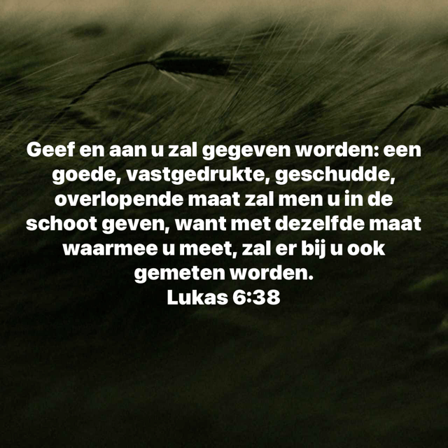 God wil dat we geven, zoals Hij dat ook doet. Hij geeft ons nieuw leven, al het goede en zelfs Zijn Zoon, uit liefde voor ons. Het principe van geven zet iets in gang, dat heb ik eerder al gezegd, en deze Bijbeltekst bevestigt dat nog eens.
