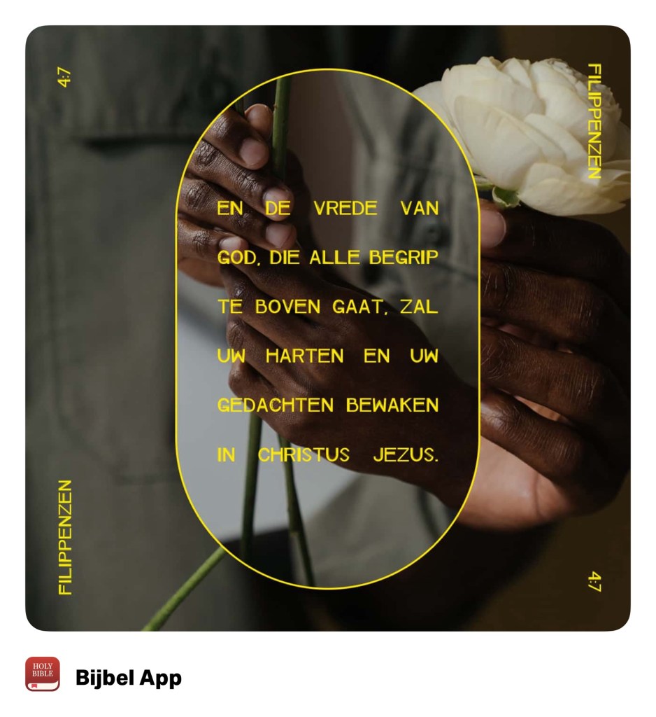 “In een wereld vol onzekerheden biedt God een vrede die geen mens kan begrijpen. Deze vrede beschermt je hart en gedachten, zelfs te midden van de storm.